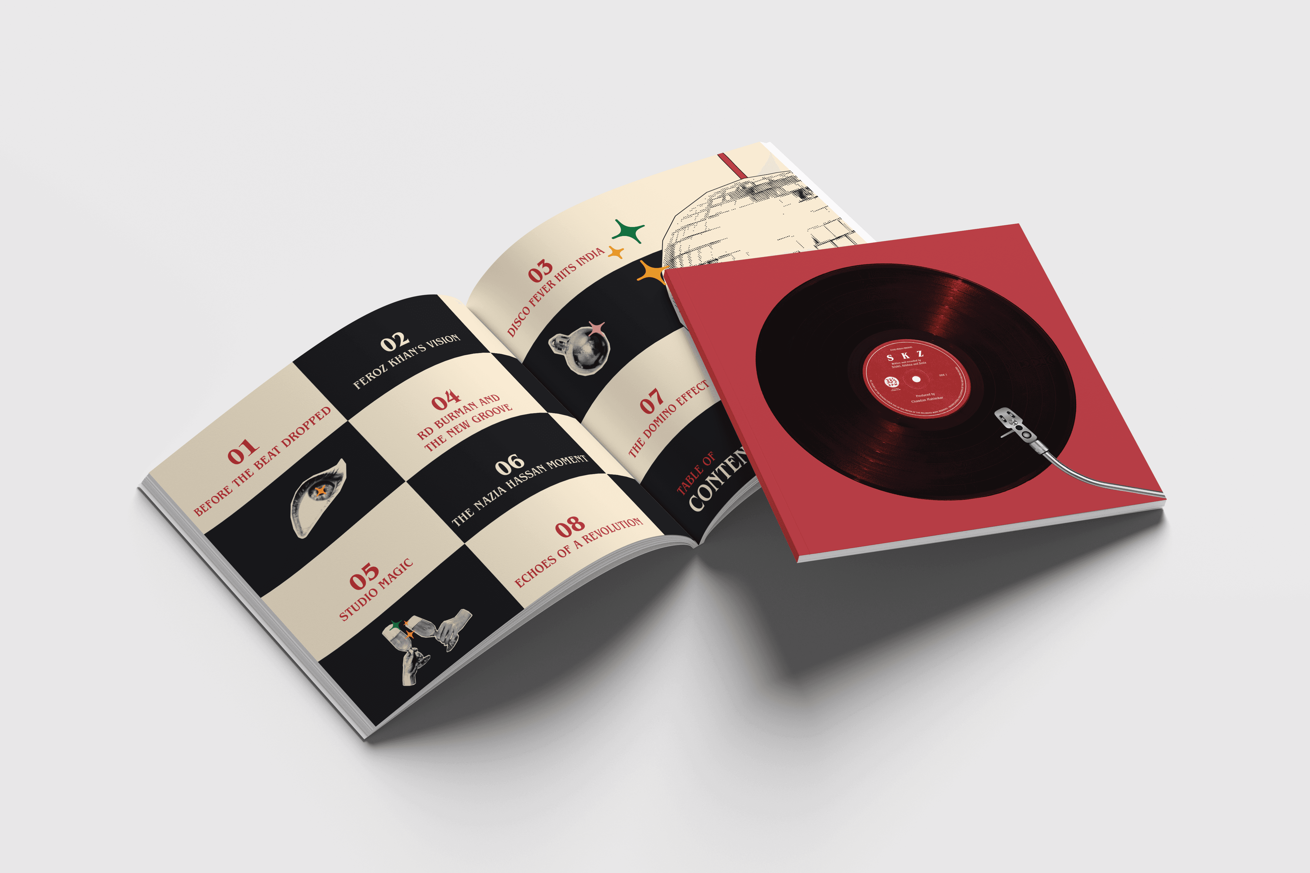 This editorial project reimagines the disco era in India through a bold, research-driven visual language. Inspired by the energy, rhythm, and excess of the time, the book uses expressive typography, strong colour contrasts, and dynamic layouts to mirror the movement of disco itself. Archival references and cultural influences guided the design, resulting in an editorial narrative that feels immersive, playful, and rooted in history.